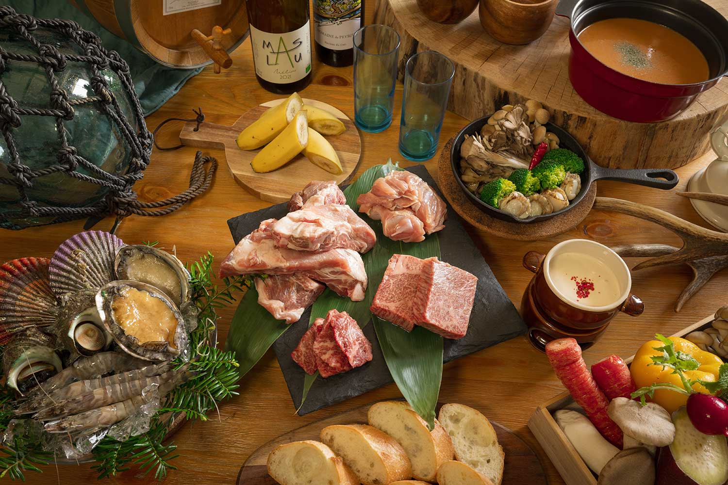 英虞湾で獲れた海の幸などBBQスタイルならではのお洒落なスキレット料理やスープなど、地元産の食材をたっぷり使用した伊勢志摩BASEならではのBBQメニューをご提供しております。