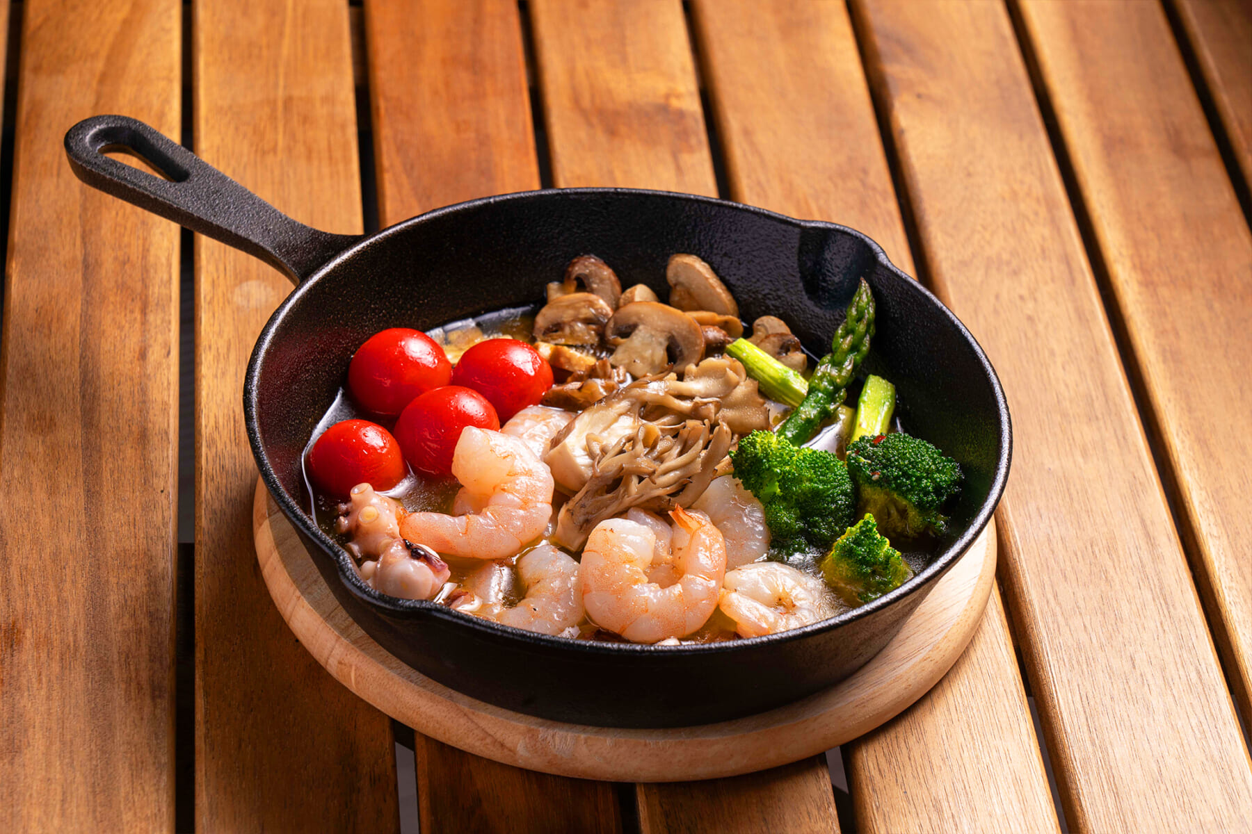 その瞬間、口いっぱいに広がるのは、深みのある風味とクリーミーな後味。ニンニクの効いたアクセントとピリッと効いたチリが、このアヒージョのコクと旨味を一層引き立てます。